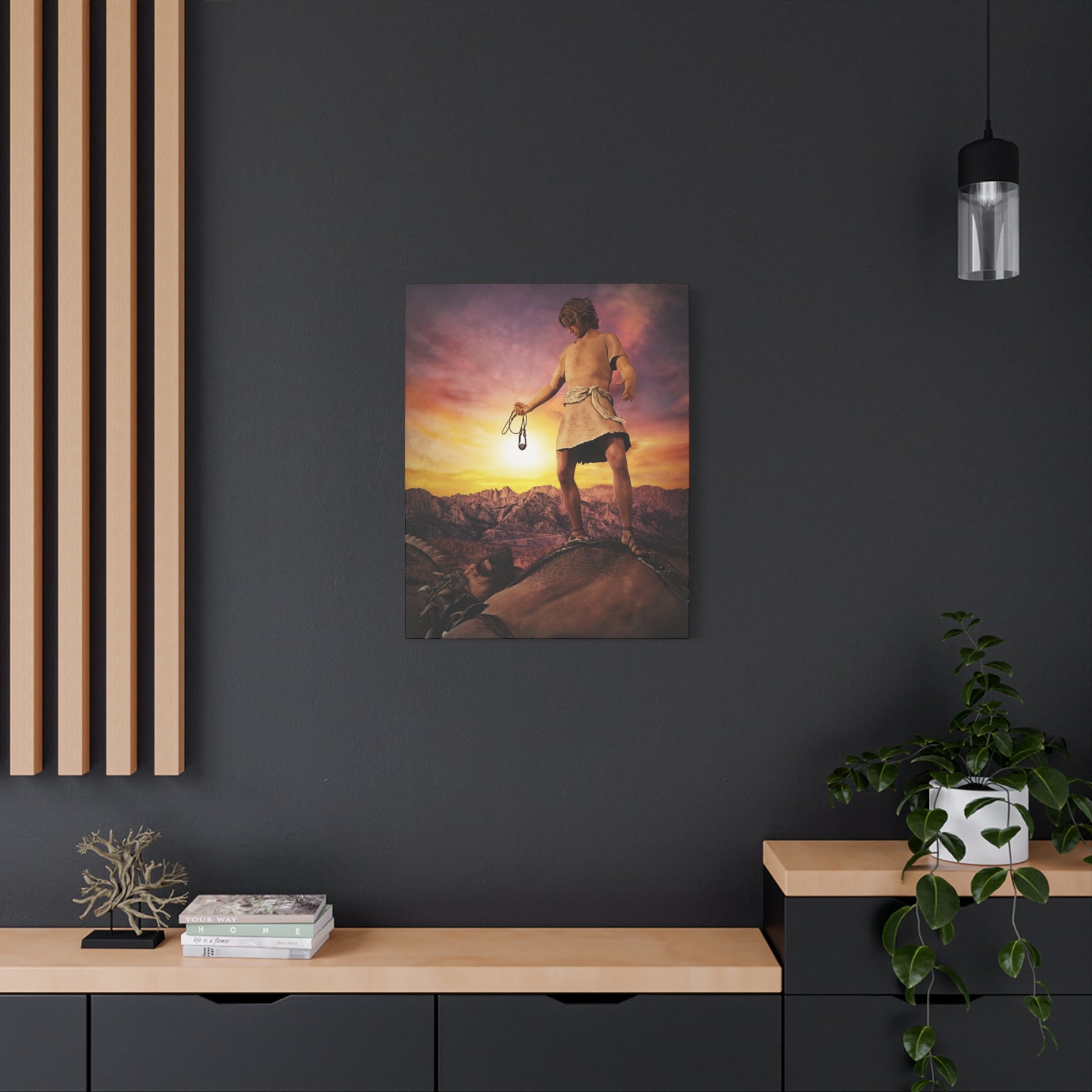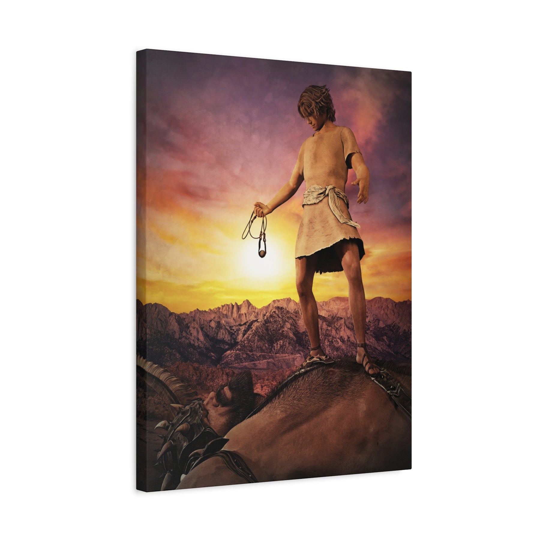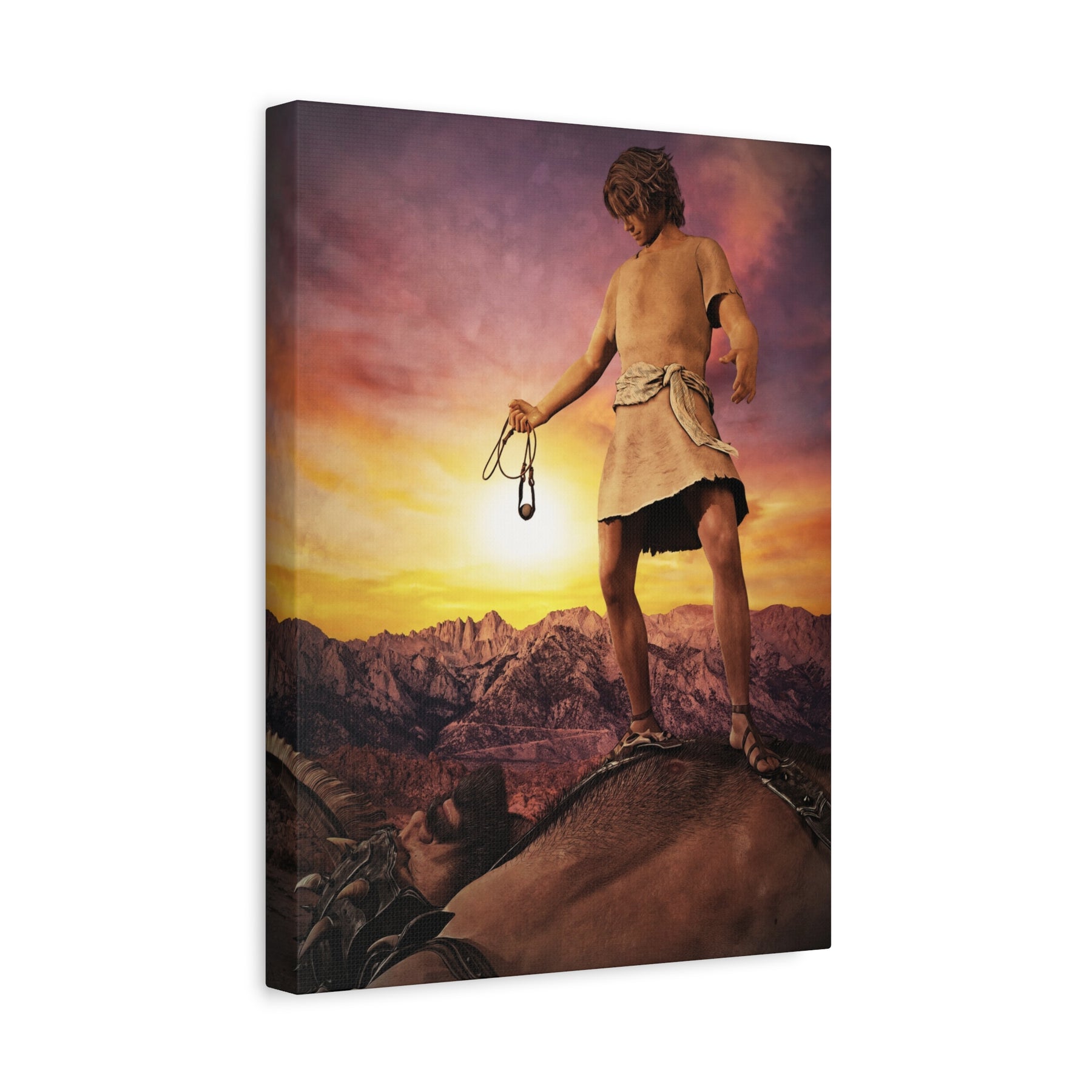 The Biblical account of David and Goliath is one of the most popular stories from Scripture. It is a lesson of courage, faith, and overcoming what seems impossible. I wanted to capture David reflecting on the victory the Lord gave him over the great Philistine giant. David’s clothes are brown which symbolizes that he was clothed in humility. God was able to use David to defeat this feared enemy of Israel because David was aware of his identity in the Lord even though others considered him to be an insignificant, shepherd boy. As children of the Most High, we need to know who we are in Christ so we can fulfill our destiny in the earth.